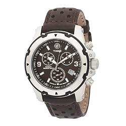 This Timex watch is an excellent time piece the represents what Timex is all about. A solid stainless steel case and brown leather band makes this watch look great on anyone. Featuring a brown face, water resistance up to 100 meters and Indiglo night light, chronograph and shock resistance.