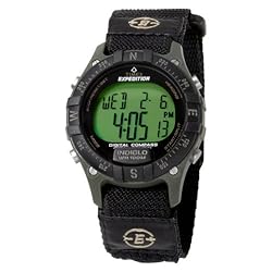Showcasing an exciting digital compass function, the Timex Men's Digital Compass Fastwrap Strap Expedition Watch contains everything needed to explore the great outdoors. Constructed with a lightweight resin case, the watch includes a resin bezel with compass markings and a black canvas-and-Velcro wristband secured with an adjustable Velcro clasp. A strong acrylic window shields the digital-green dial, which displays the time as well as digital compass markings in the top left and top right corners. The watch also includes four function buttons that control the mode, stop/reset, heading, and start/split features. Built with an Indiglo night-light option, 100-hour chronograph with lap and split options, 99 minute countdown timer, and daily alarm, this all-in-one timepiece is water resistant to 330 feet (100 M). It is powered by quartz movement.