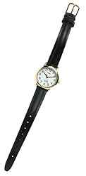 Stainless Steel Case, Ladies Goldtone Classic with Black Leather Band Goldtone stainless steel buckle closure Leather Strap