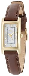 Classically designed for timeless appeal, this gold-tone Timex stainless steel women's watch (model 2K111) offers an affordable way to perk up any ensemble. It features a tall, thin rectangular case with a polished gold-tone stainless steel bezel. It frames a white dial background that's accented with a mix of shiny golden stick and Arabic numeral markers. It's completed by a thin, smooth reddish brown leather strap with tonal stitching. It also offers the Indiglo backlighting feature for easy viewing in low-light and a scratch-resistant mineral crystal.