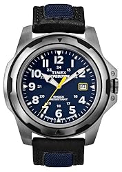 (More customer reviews)I got this watch to wear when I didn't want to risk loosing or damaging my Pulsar on back-country trips. I was looking for a rugged, dependable analog watch that was easy to read in any light condition and looked good and this watch fits the bill. The strap seems to be well made and is fairly rigid out of the box. It will take some breaking in for a flexible relaxed fit but I don't view this as a negative. I have the blue face with yellow sweep and yellow around the date display and the colors really look great. Timex's indiglo is great for those dark night camping trips when you don't want to try and read your barely luminescent watch face. I haven't banged it around much yet but initially it seems very solid. Some points that you'll want to bear in mind. The second sweep hand is off just slightly so that it doesn't line up spot on to the tick marks of the face. The second hand also has a very audible tick-tick-tick sound to it which may just drive you crazy if you are a light sleeper. Since a watch should, primarily, keep accurate time I marked this watch down due to the second hand being off register and, since this is a rugged watch I would have expected better sound dampening capabilities. Otherwise this is a handsome looking watch that seems pretty durable thus far.