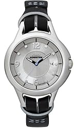 Combining progressive styling with one-of-a-kind technology, this Timex Women's Expedition Fashion Watch #T49644 is perfect for a night out or a weekend adventure. Powered by analog-quartz movement, this stunning timepiece features a stationary silver-tone brass bezel, a 32-millimeter brass case, and a durable mineral dial window. A black genuine leather band and its accompanying buckle clasp ensure a stylish fit. The silver dial face features alternating silver-tone bead indexes and stylized Arabic numerals, and for added clarity and precision, a series of stand-out black hour indexes ring the dial face, while a handy date calendar rests at the three-o'clock position. Water resistant up to 330 feet, this watch is backed by a 1-year manufacturer's warranty.