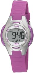 Keeping on moving. This Timex Women's 1440 Sports Watch #T5K080 is a classic blend of traditional design with contemporary details and technological innovations. This timepiece, which is powered by digital-quartz movement, comes equipped with a steadfast resin band in brilliant violet and an accompanying buckle clasp. The acrylic dial window, stationary resin bezel, and 35-millimeter resin case ensure stylish durability. Other handy features include the easy-to-read digital gray dial face, a 24-hour chronograph, a daily alarm, a calendar, and an Indiglo nightlight function. This watch, which is water resistant to 165 feet.