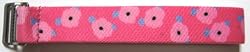 This 16mm nylon timex band is pink with a floral design and has a stainless steel closure