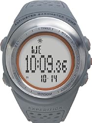 Digital quartz movement, Casual watch, Chronograph, Alarm, Timer, Altimeter, Barometer, Temp sensor, Indiglo® night-light, Brushed stainless steel silver-tone bezel with black letters, Grey resin case, Brushed stainless steel silver-tone selector buttons with orange accents, Brushed stainless steel silver-tone caseback set with four screws, 50 meters/165 feet water resistant