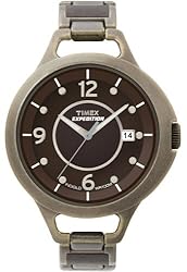 Combining progressive styling with one-of-a-kind technology, this Timex Women's Expedition Fashion Watch #T29647 is perfect for a night out or a weekend adventure. Powered by analog-quartz movement, this stunning timepiece features a stationary silver-tone brass bezel, a 32-millimeter brass case, and a durable mineral dial window. A sturdy polyurethane band and its accompanying fold-over-with-hidden-double-push-button-safety clasp ensure an easy and comfortable fit. The rich brown dial face features alternating silver-tone bead indexes and stylized Arabic numerals, and for added clarity and precision, a series of black stand-out hour indexes ring the dial face, while a handy date calendar rests at the three-o'clock position. Water resistant up to 330 feet, this watch is backed by a 1-year manufacturer's warranty.