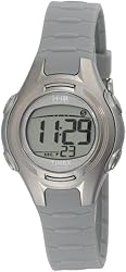 Keeping on moving. This Timex Women's 1440 Sports Watch #T5K085 is a classic blend of traditional design with contemporary details and technological innovations. This timepiece, which is powered by digital-quartz movement, comes equipped with a steadfast resin band in versatile gray and an accompanying buckle clasp. The acrylic dial window, stationary resin bezel, and 35-millimeter resin case ensure stylish durability. Other handy features include the easy-to-read digital gray dial face, a 24-hour chronograph, a daily alarm, a calendar, and an Indiglo nightlight function. This watch, which is water resistant to 165 feet.