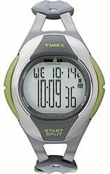 The Timex Midsize/Unisex Ironman 75 Lap Titanium Watch allows you to prepare for a tough race with an equally tough timepiece. The watch is constructed with a durable resin case, a stationary gray-and-green titanium bezel, and a strong, gray resin wristband with a secure fold-over clasp. A durable mineral window shields the digital-gray dial face, which displays the time as well as the day and date. Four buttons decorate the bezel--mode, stop/reset, Indiglo, and set/recall--while a prominent start/split button rests below the six o'clock position and tracks up to 75 laps. This athletic timepiece is powered by digital-quartz movement and is water resistant to 330 feet.