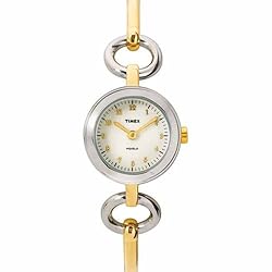 Be on time for business meetings and important functions with this Timex women's two-tone bracelet watch. This analog watch has a sophisticated-looking white dial with gold stick indexes complemented by a two-tone stainless steel bracelet with self-adjustable links. It also has a convenient Indiglo night light for easy readability in low light. This timepiece is backed by a 1-year manufacturer's warranty.