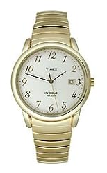 Quartz movement, Dress watch, Indiglo® night-light, Black hands, Gold-tone numbers, Analog date display, Polished stainless steel bezel, crown and case, Stainless steel caseback, 30 meters/100 feet water resistant