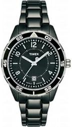 Timex SL Series 3 Hand Ladies contemporary Quality design from Timex for ladies with Indiglo night-light, Stainless steel case with enamel top ring, and Black dial with Luminous Markings Date display at 6 O'Clock Black Ion Plated Bracelet Ion Plated Bracelet Black